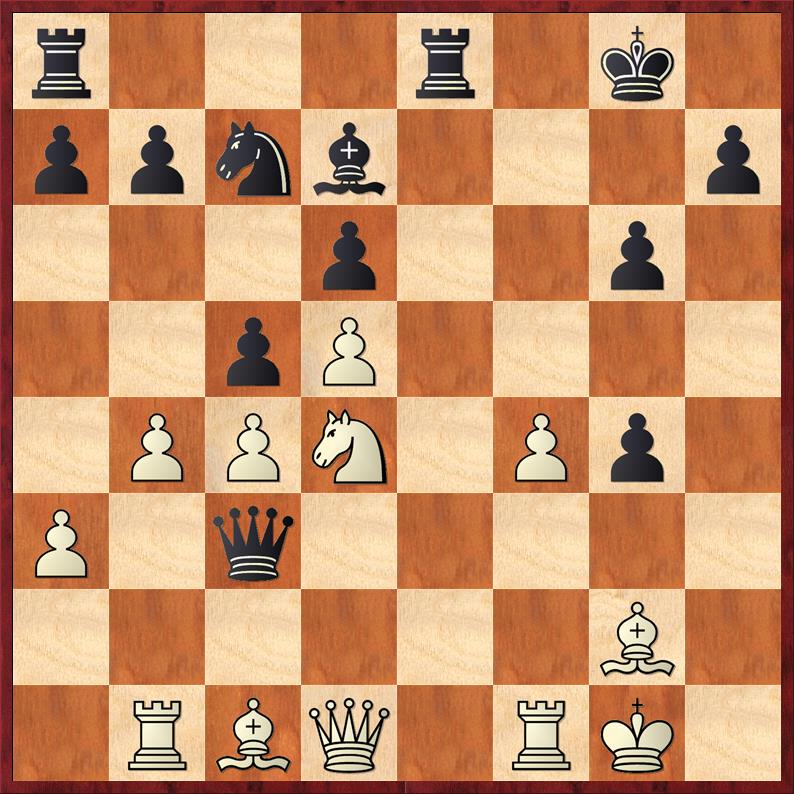 Hier spielte er stark 19. …e5!, was seinen Gegner vor eine höchst unangenehme Wahl stellte – 20.f5 ziehen oder seinen e-Bauern schwach werden lassen!?