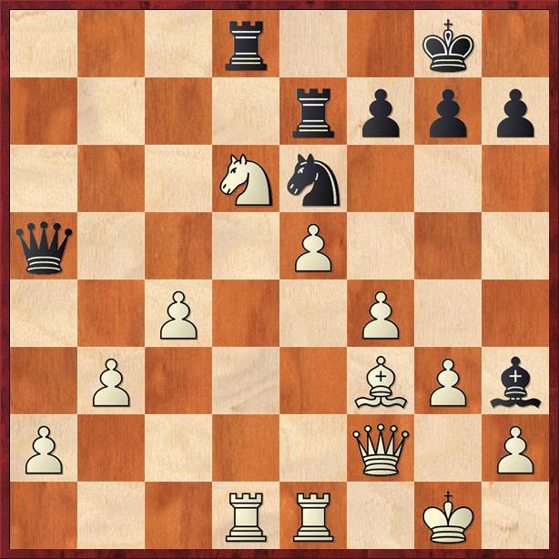 ... so jedoch befand sich die Partie wieder im Gleichgewicht, bis ich in aufkommender Zeitnot an dieser Stelle den Faden verlor (23.Te1!= anstelle von Sb5?!) ...